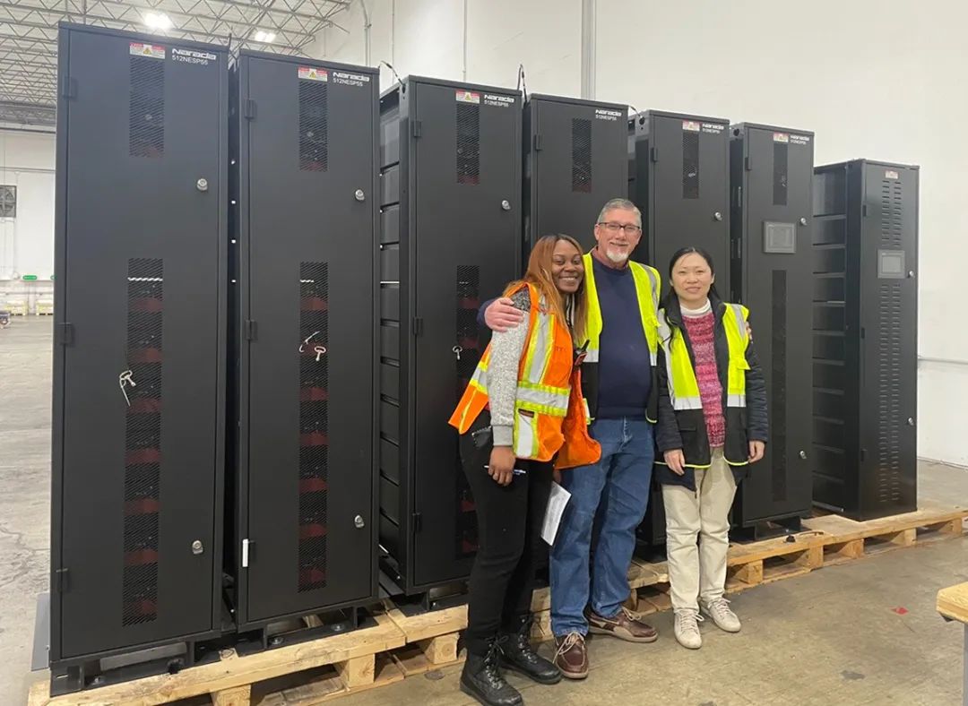第一批高压锂电系统运到项目地后,客户对产品举行了背靠背的并联排布,在调试历程中,发明各系统间的智能控制信号传输有滋扰。项目手艺团队连忙通过远程视频与客户一项项排查缘故原由,倒着时差过上了美国时间。
